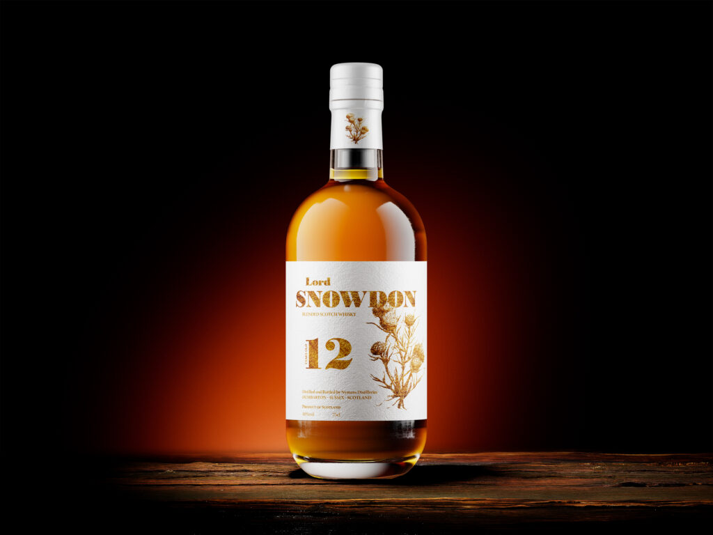 A very elegant and modern design for an ancient and renowned distillery with 130 years of experience in producing and aging high-quality whiskey, like Lord Snowdon.