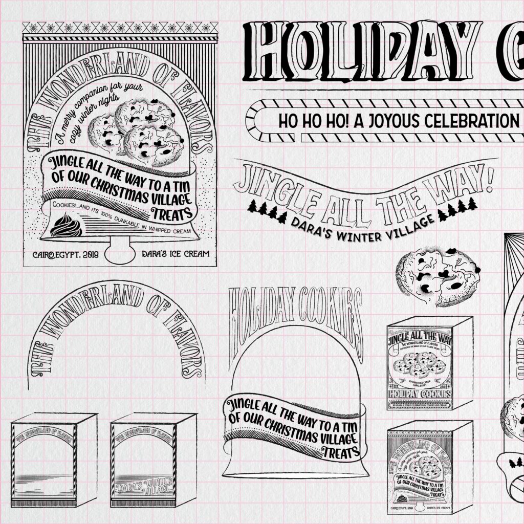 This is a packaging project by StudioMarz, it’s for an Ice cream store that sells cookies and brownies as well, so we created the concept of a vintage Christmas market, the theme of all stores during the Christmas season will be designed as a vintage Christmas market.