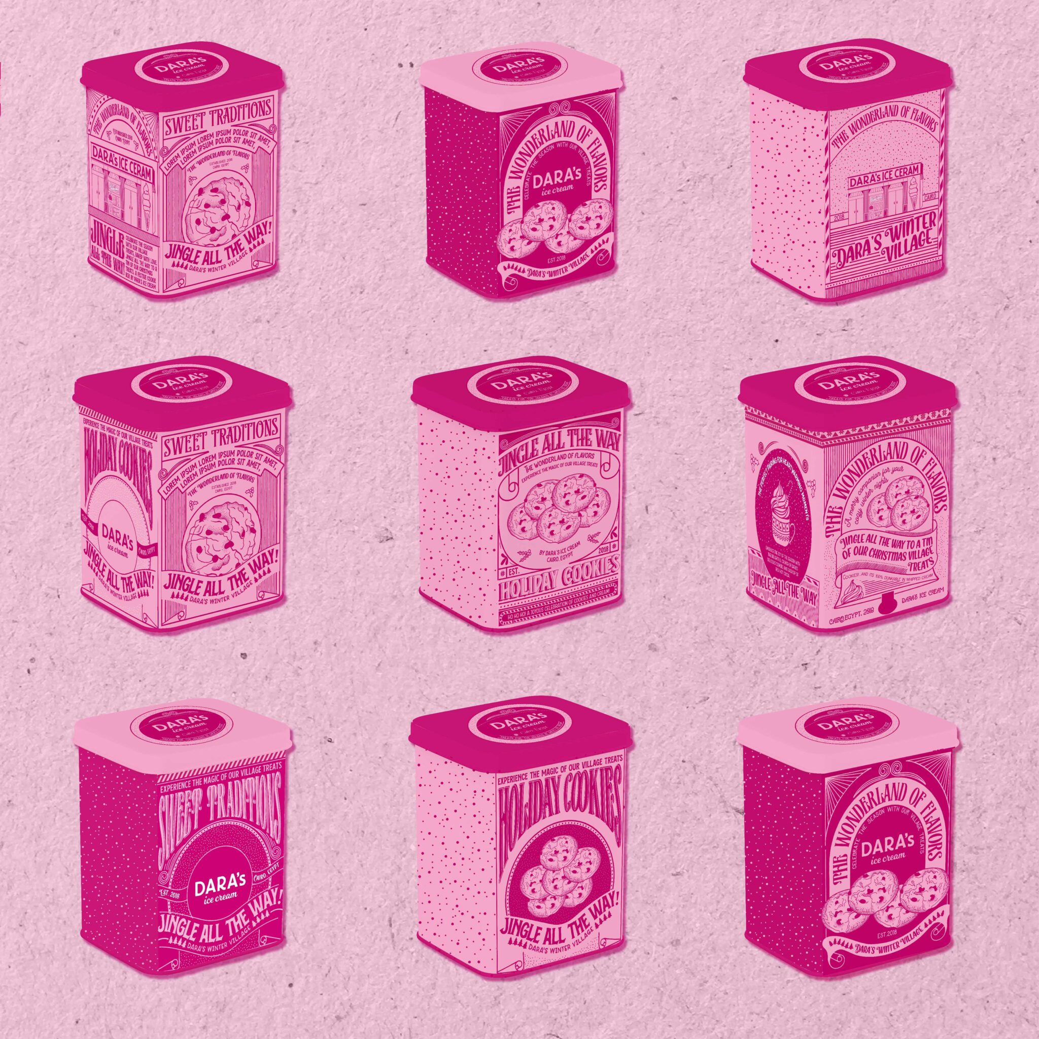 “Dara’s Christmas Village” and according to the concept all the packaging was designed with a vintage Christmas theme in terms of illustration style, typography, and packaging materials that’s why we used tin boxes as holiday treats box, we wanted to capture the essence of Christmas traditions and visuals through illustrations and copywriting, and we wanted customers to find everything they need to immerse in the Christmas/holiday spirit.