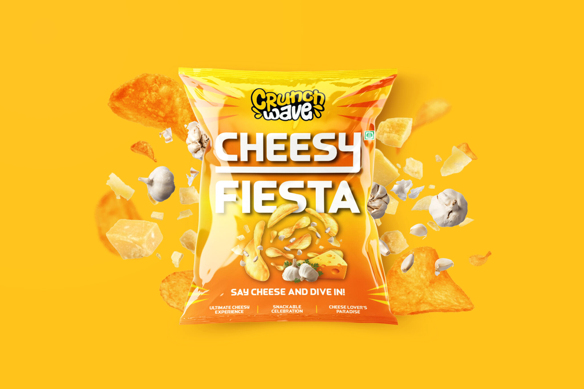 Step into a visual feast that transcends the ordinary – welcome to the CrunchWave Snacks Packaging, a captivating display of artistry and flavor innovation. As a graphic designer, I invite you to embark on a journey through a collection that goes beyond mere wrappers; it’s an exploration of taste and design, a celebration of the senses.