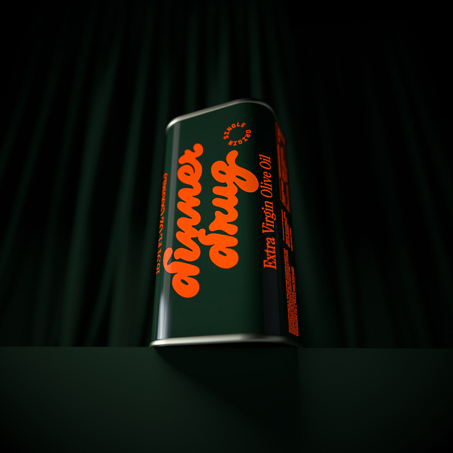 The visual identity is based on a very bold and impactful type composition, where the logo’s custom lettering coexists with a condensed serif font. The typographic visual covers the entire surface of the canister, displaying the catchphrase ‘Illegally tasty’ on the BOP and the brand’s manifesto on the side. All of the design elements are printed in a flashy neon orange color, contrasting with a deep, dark green background.