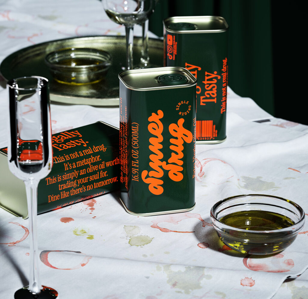 Dinner Drug is a new Cretan olive oil. It is not really drug; it’s a metaphor. It’s simply an olive oil worth trading your soul for. Dine like there’s no tomorrow.