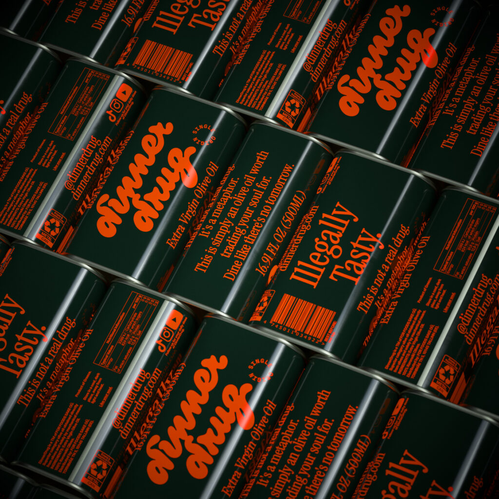 Dinner Drug. Extra Virgin Olive Oil. Illegally tasty.
