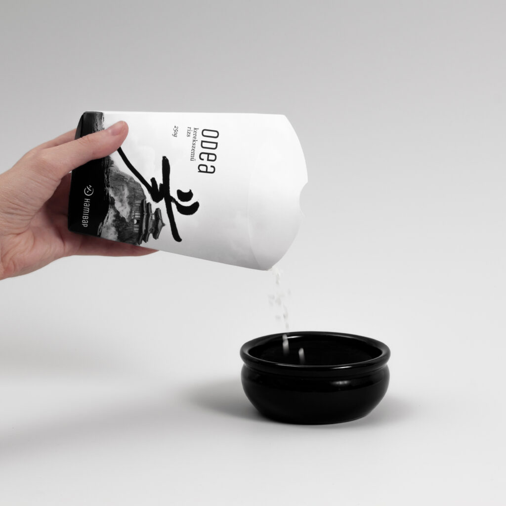 The key visual elements appear in the graphic design: they are not repeated, they just complement the already existing visuals. The Far Eastern association is also strengthened by the curved top of the box; this does not only have an aesthetic role but it also makes pouring the rice easier.