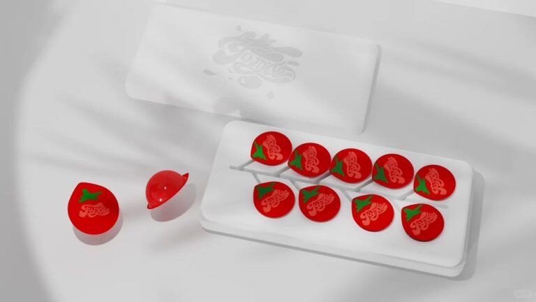 🐳Design Ideas: Using the big tomato as the visual symbol, combined with TOMATO’s English font, it looks like a tomato that bursts with juice just after being picked. The inner box is made of an environmentally friendly paper-plastic box, combined with the shape of a bunch of small tomatoes, which is independent and convenient.