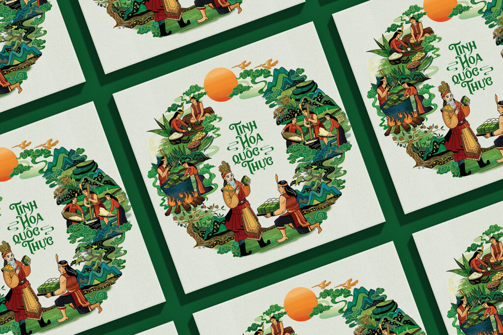 The illustration style is inspired by traditional Vietnamese paintings, folk drawings combined with rustic, familiar drawings. Kinh Ky Fresh Chung Cake is a “Precious – Meaningful – Exquisite” gift, not only aesthetic but also expressing pride in Vietnamese cultural heritage.