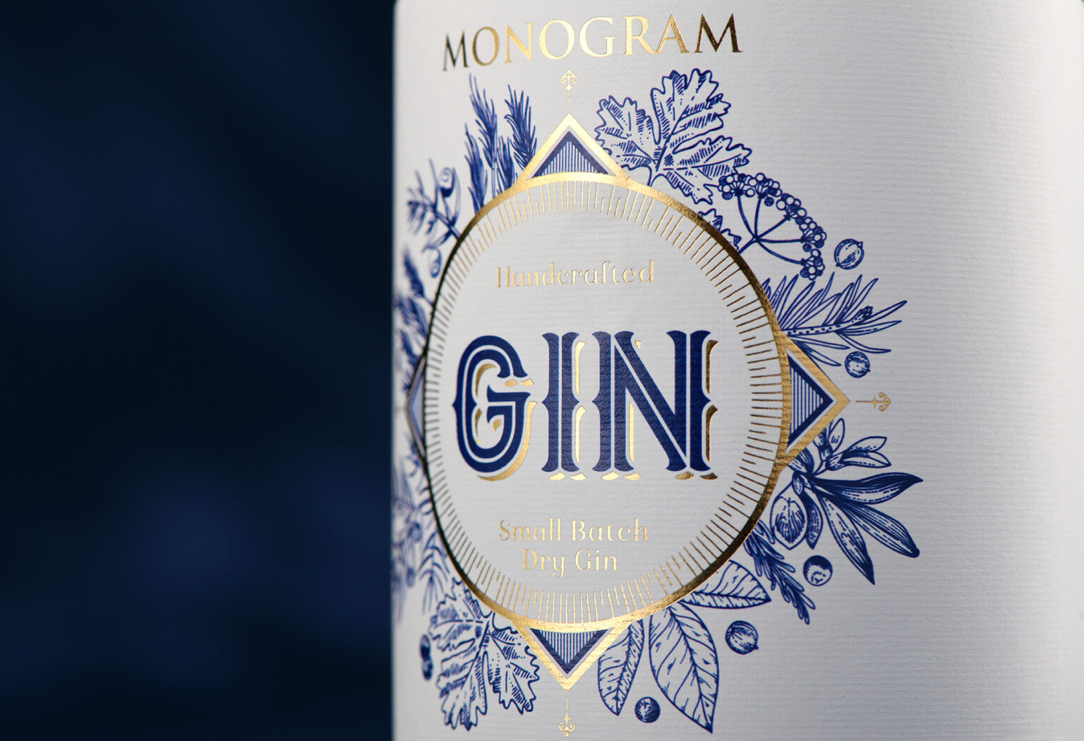 To highlight the unique character of Monogram gin, we packed the bottle in a royal dark blue box, which, with its design details, entices the viewer to “enter” the box and discover all the richness of complex flavours that Monogram gin contains.