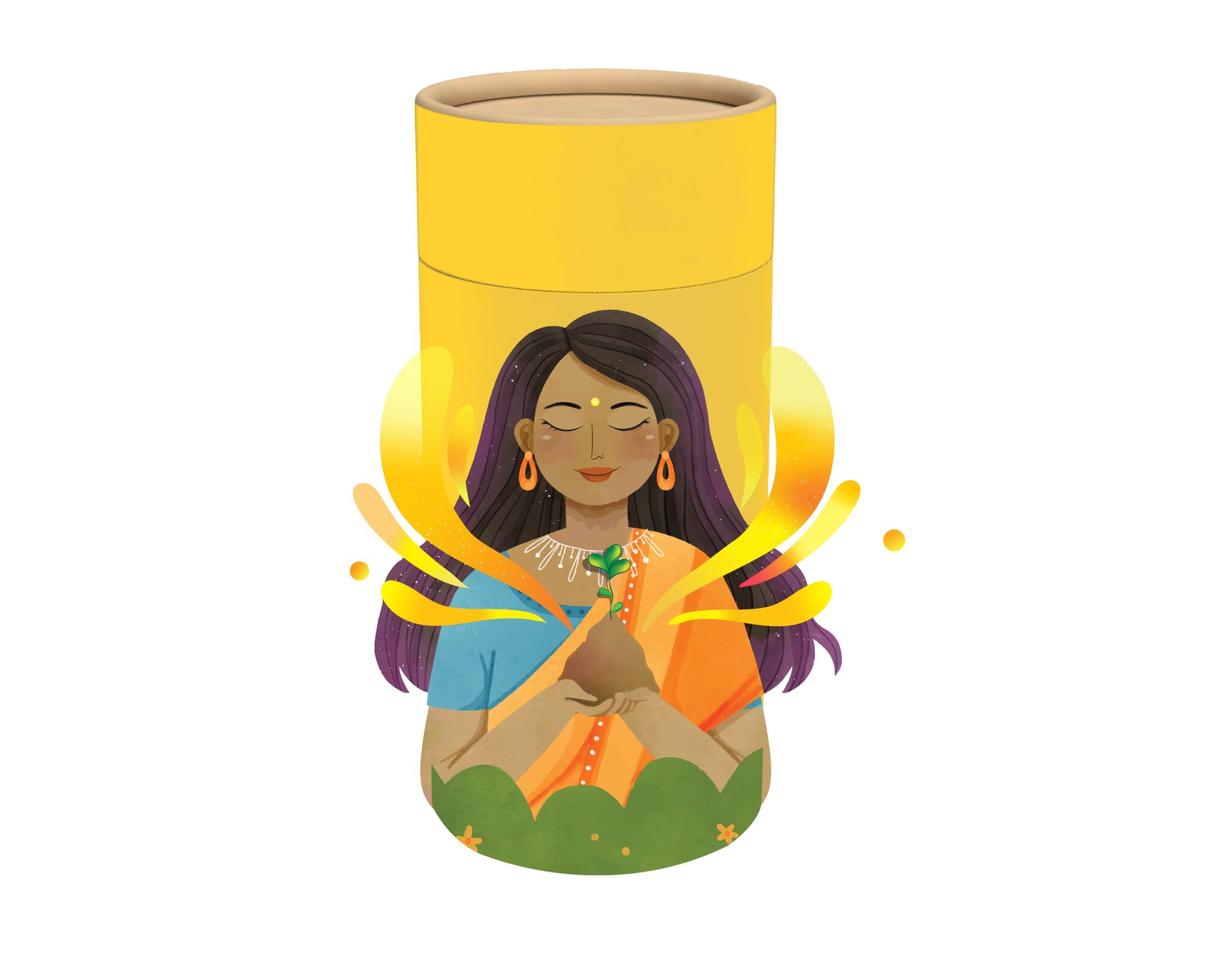 At its core, this packaging concept depicts a metaphorical representation of the revered Indian goddess Lakshmi, commonly worshipped during the Diwali festival. In the Hindu myth, it is said, on Dhanteras, the devas briefly form an alliance with the asuras to churn the ksheer sagar (ocean of milk) and bring to the surface the nectar of immortality (also known as amrit), through which the goddess Lakshmi emerges. The packaging, like this mythical churning, brings forth the abundance of joy, prosperity, and well-being symbolized by Ugaoo plants. It aims to align seamlessly with the age-old belief that worshiping goddess Lakshmi during Diwali ushers in wealth and prosperity.