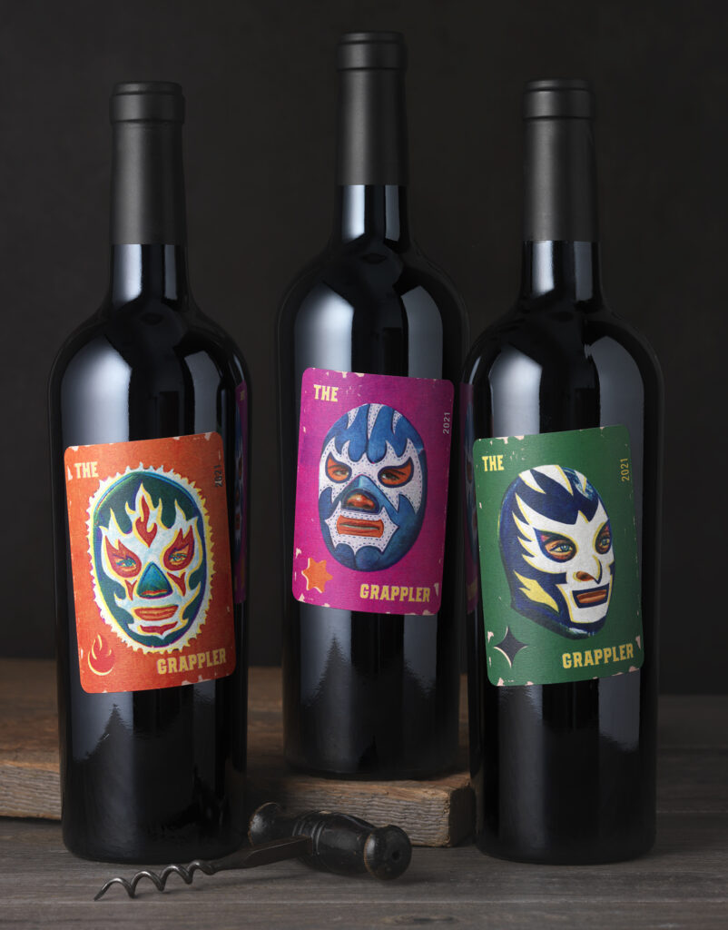 There are many parallels between winemaking and the sport of wrestling (grappling). Both demand creativity, discipline, and hard, physical work to be rewarded with success. CF Napa developed a colorful cast of six characters inspired by the vibrant tradition and masks of Lucha Libre (Mexican Wrestling). The labels are placed on the bottle at an angle to give the packaging a fun, rough-and-tumble vibe. The solution brought together the sport of wrestling and the Vinoce Vineyards owner’s residency in Mexico, while also honoring the many Mexican farmworkers that form the hardworking backbone of the wine industry. CF Napa created the series of unique masks to encourage imbibers to collect all six of the wines.