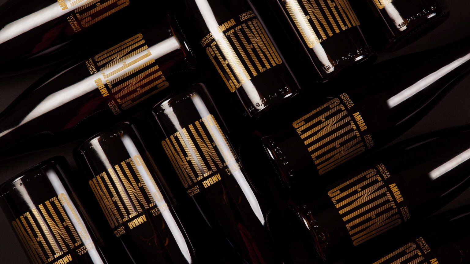 The font design was inspired by the texture of cereal, utilising custom lettering for this special occasion. The golden colour contrasts with the dark bottle, creating an elegant appearance for a robust beer that surprises and evokes sensations.