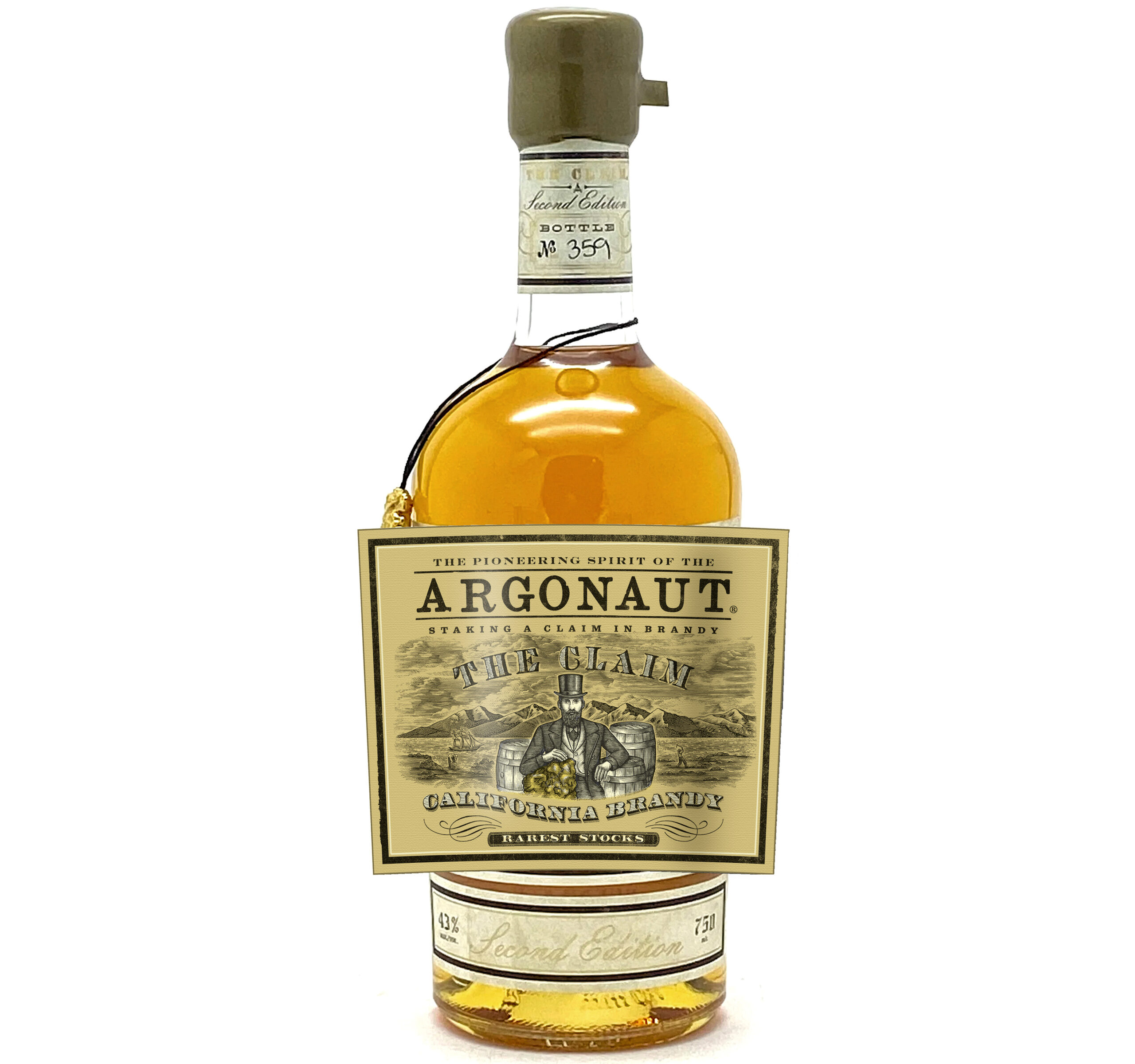 The Argonauts of the Gold Rush were charmed and captivated by Sam Brannan’s claim of gold in the American River back in 1847. His proclamation proved the catalyst for a new era in American history, accelerating Westward expansion. For this Second Edition of The Claim, Steven Noble was tasked with creating this unique custom woodcut illustration that depicts Sam Brannan holding newly discovered gold surrounded by whiskey barrels for the new Argonaut Brandy labels.