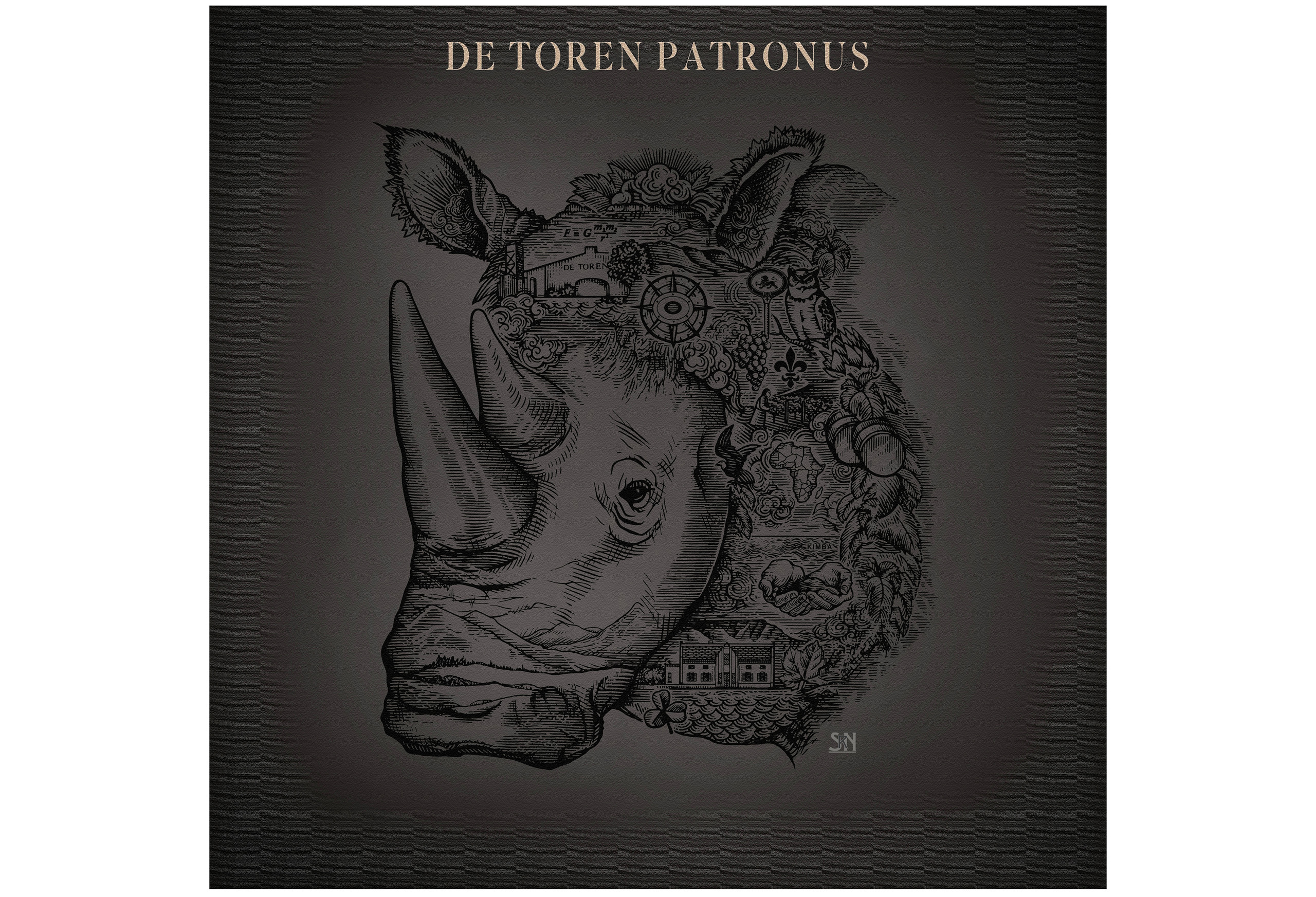 De Toren Private Cellar tasked Steven Noble along with the design direction from Pure Creative to render a custom illustration for The De Toren Patronus wine label created from one of the finest ultra-premium Malbec wines in the world. This uniquely created hand-crafted woodcut illustration embodies the South African Rhino with the integration of all the symbolic elements of the winery’s cultural history and iconic brand. De Toren Private Cellar, a boutique winery specializing in luxurious, world-class Bordeaux-style wines is situated on the Polkadraai Hills overlooking the picturesque Stellenbosch, False Bay to the south and the renowned Table Mountain in the west.