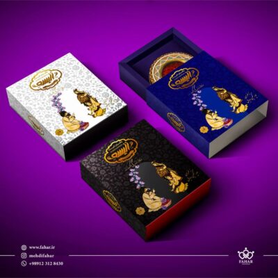 The design of saffron packaging with Elise brand in the form of a match cardboard box using slime and miniature motifs in three different colors is from the saffron packaging projects in the Fahar brand development studio.