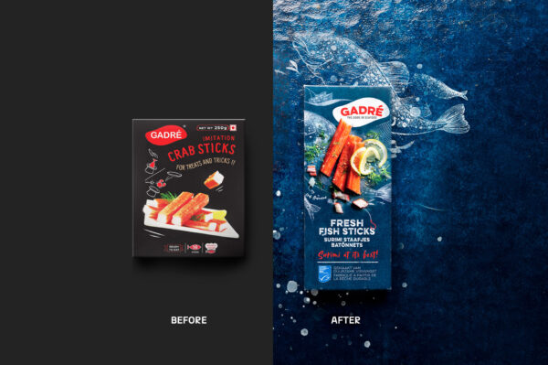 By telling the authentic story of surimi and bringing it to life through attractive designs, Gadré has claimed a new position in the market, moving up the qualitative perception ladder. The new packaging design now allows Gadré to bring their global expertise as a surimi producer directly to the European consumer.