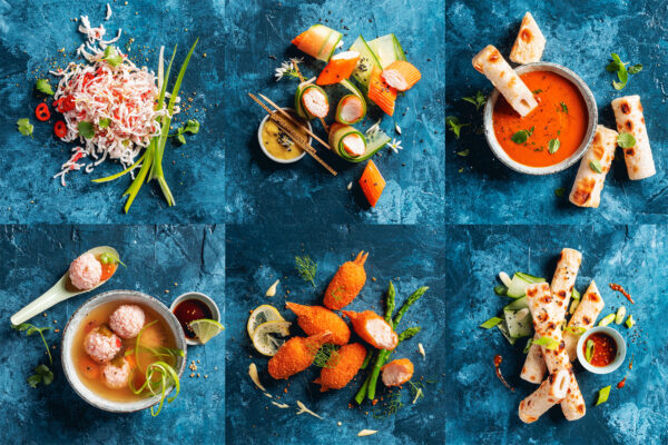 So we took a step back and rediscovered a product with a very old Japanese origin, made for fishermen who went to sea for a long time. With its unique processing and preservation techniques, its abundance of proteins, surimi turned out to be an honest, healthy product that creates endless possibilities in terms of shapes, flavours, innovation and taste experience.