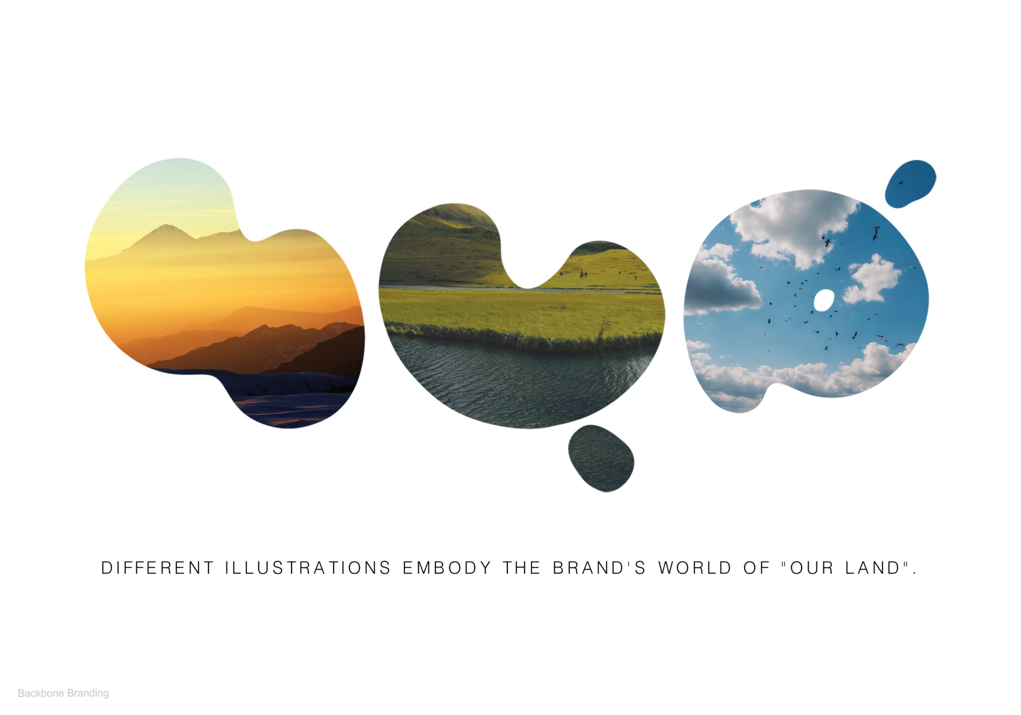 Our new typographic logo features uneven letters that represent Armenia’s mountainous landscape. To ensure the logo could coexist with colorful labels, we made it completely black. We transformed the previous colorful spots into abstract, colorful letters that spell out product names. The so-called “letter-spots,” which are actually sticker labels, allowed us to expand the brand world of “Our Land.”