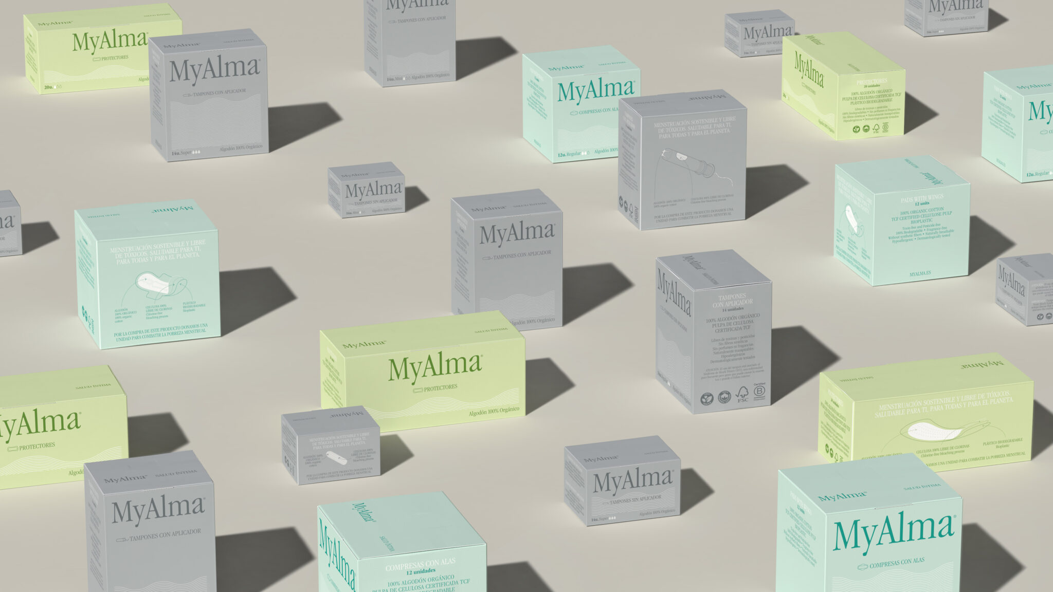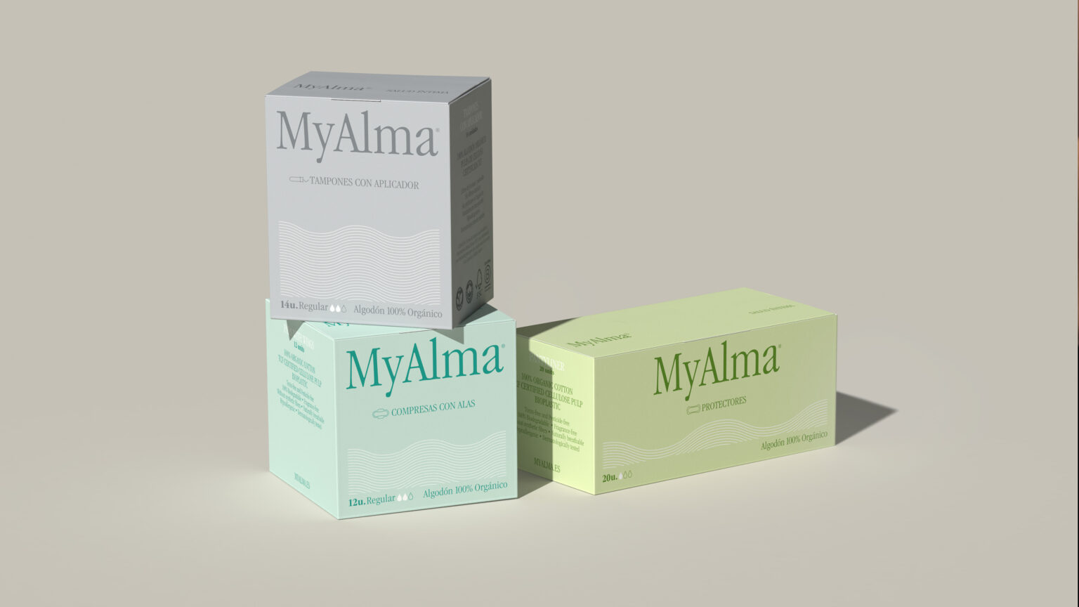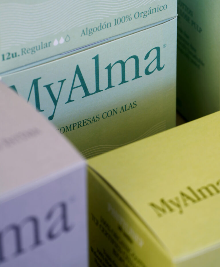 MyAlma has taken a bold step forward with a transformative redesign that goes beyond aesthetics. The brand’s commitment to simplicity and clarity is now vividly reflected in every aspect. At the heart of this rebranding effort is a key visual that seamlessly intertwines with the natural rhythm of the menstrual cycle. This visual element is present across all product packaging and serves as a powerful symbol of the brand’s commitment to understanding and supporting women at every phase of their cycle. The technical illustrations of the product’s elements were developed to emphasize this commitment and to send a clear and direct message to women to care not only for their own health, but also for the well-being of the planet. Our redesign’s core philosophy departs from the conventional, embracing a fresh and modern approach to menstrual health.