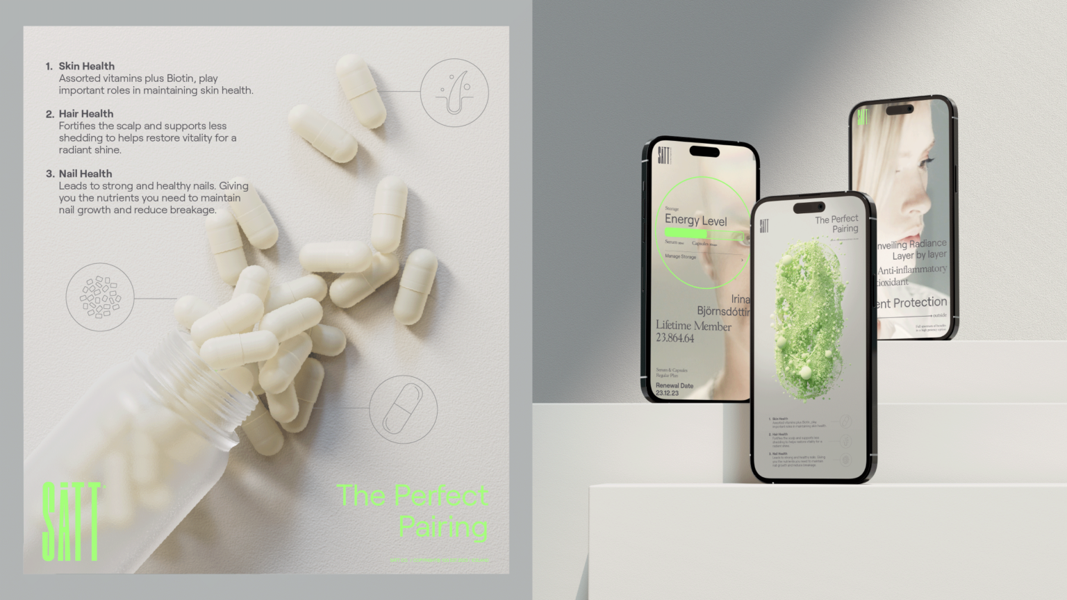 Our approach led us to the concept of “Tandem Transformation,” emphasising the combined efficacy of the serum and capsules. Establishing core brand values around authenticity, harmony, and holistic beauty, we aimed to cement Sätt’s position in the market.