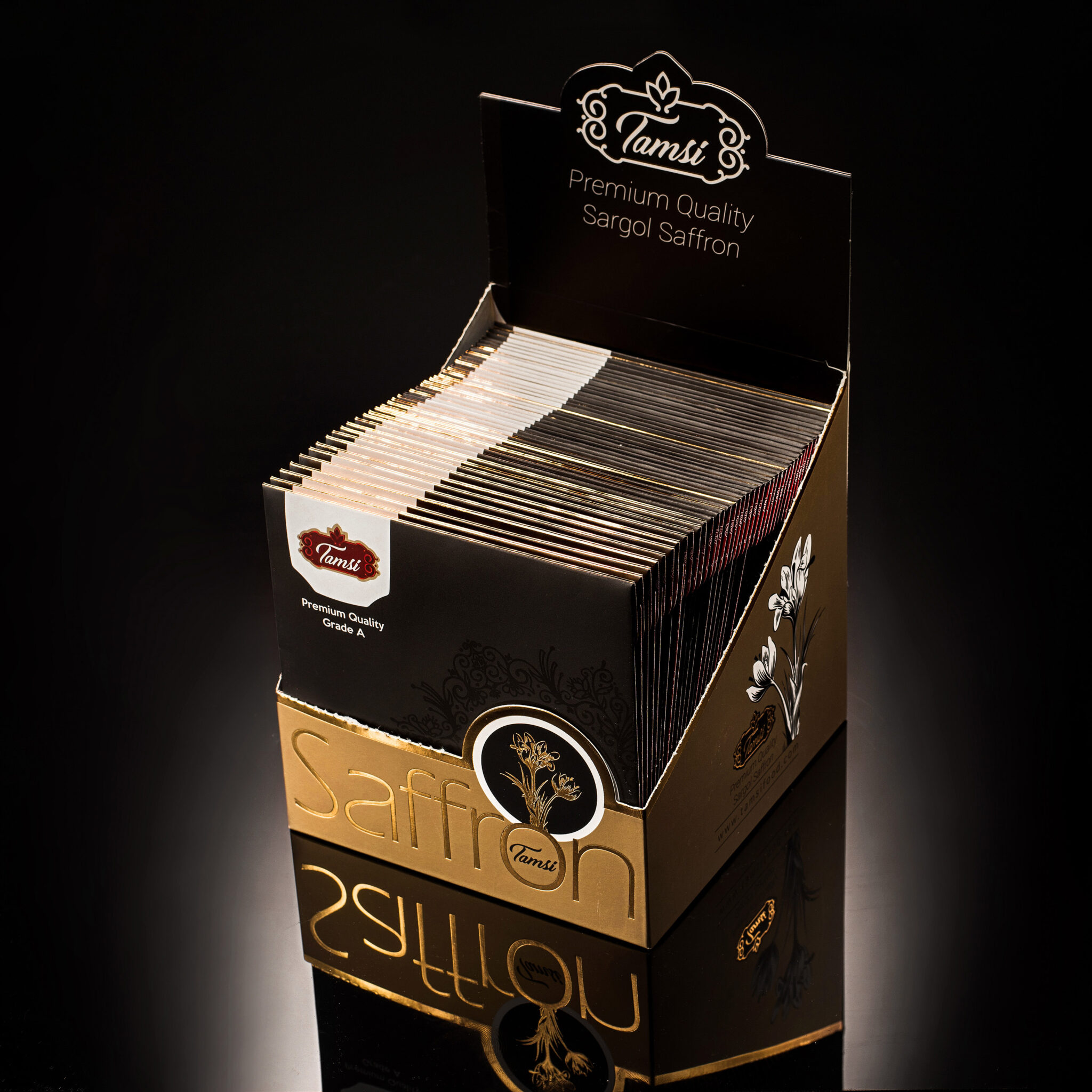 Another important thing was the presentation of these envelope saffron packages to the market, which was done in the best way with the very stylish and luxurious design and production of the mother box of these envelope saffron packages, which contains a specific number of saffron packages inside each mother box.