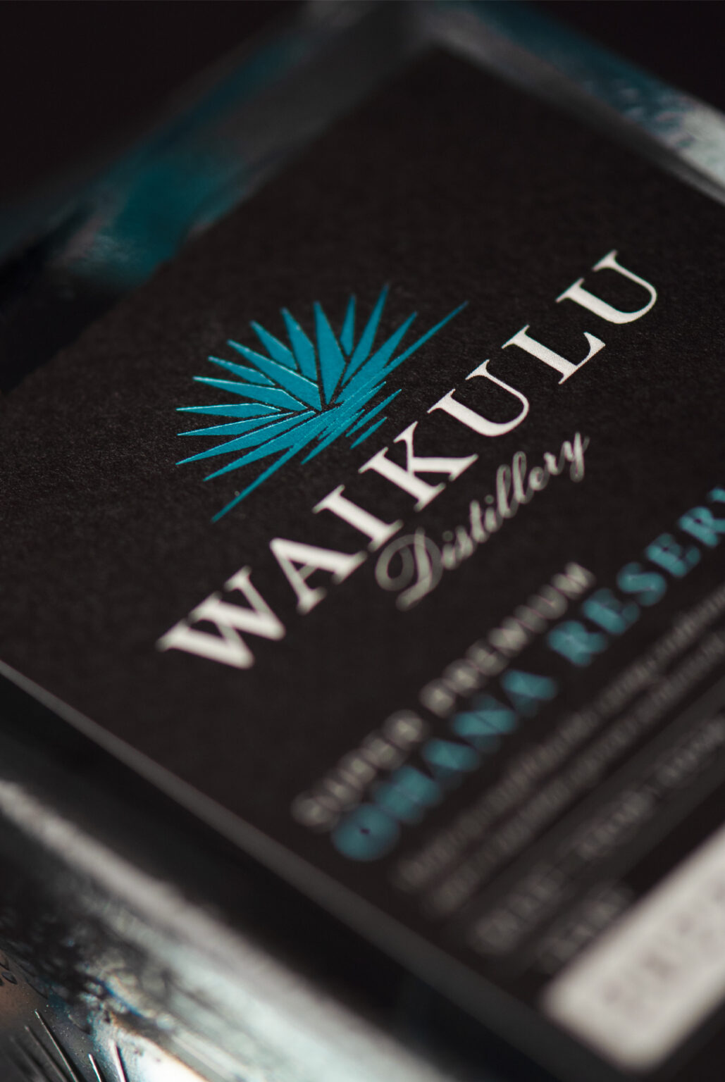 For Waikulu’s logo, CF Napa drew an agave plant rising over the ocean, a symbol that was foiled in copper on the front label and molded into the glass. For the exceptional Ohana Reserve, the agave icon was stamped with a metallic blue foil, complementing the teal hue in the glass bottle. The black label gave a gravitas to the package, creating clear differentiation from the core spirit’s cream label and a cue to the super premium quality of Ohana Reserve.