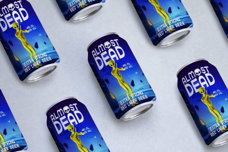 Description: Almost Dead™ packaging is more than just a vessel for beer; it’s an invitation to embark on an adventure of taste, discovery, and exhilaration. Drawing inspiration from the brand’s adventurous spirit, the packaging design embodies boldness and dynamism, capturing the essence of exploration and unpredictability. From the striking logo to the intricate details, every element of the packaging is meticulously crafted to evoke curiosity and intrigue.