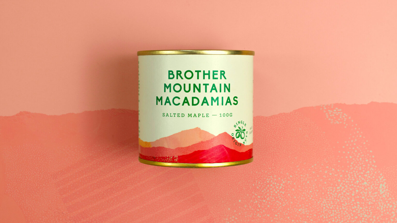 After analysing the existing Brother Mountain Macadamia logo, brand identity and packaging we advocated for a complete refresh which would allow us to create a stronger, more cohesive look that would better align with the strategy.