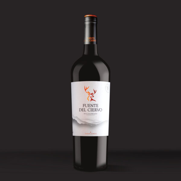 Fuente del Ciervo, a majestic red wine, features a label that captures the elegant essence of the horizon blurring into the mist from the Montes de Toledo. As a distinctive symbol, a stately stag emerges in a copper stamping, adding a touch of nobility to each bottle.