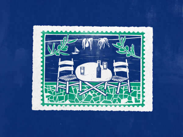 When asked to design the label for Noma Ouzo, we treated it as a Greek summer postcard, a messenger of simple pleasures and carefree moments. Our design for Noma Ouzo’s label is a tribute to the art and tradition of Mytilene, the Greek island where it originates. We’ve used local folklore xylography aesthetics to capture a moment of leisure reminiscent of the Greek summer. The back of the label is designed as a blank postcard with the sweet elements of a vintage postal stamp, inviting you to share your own summer memories.