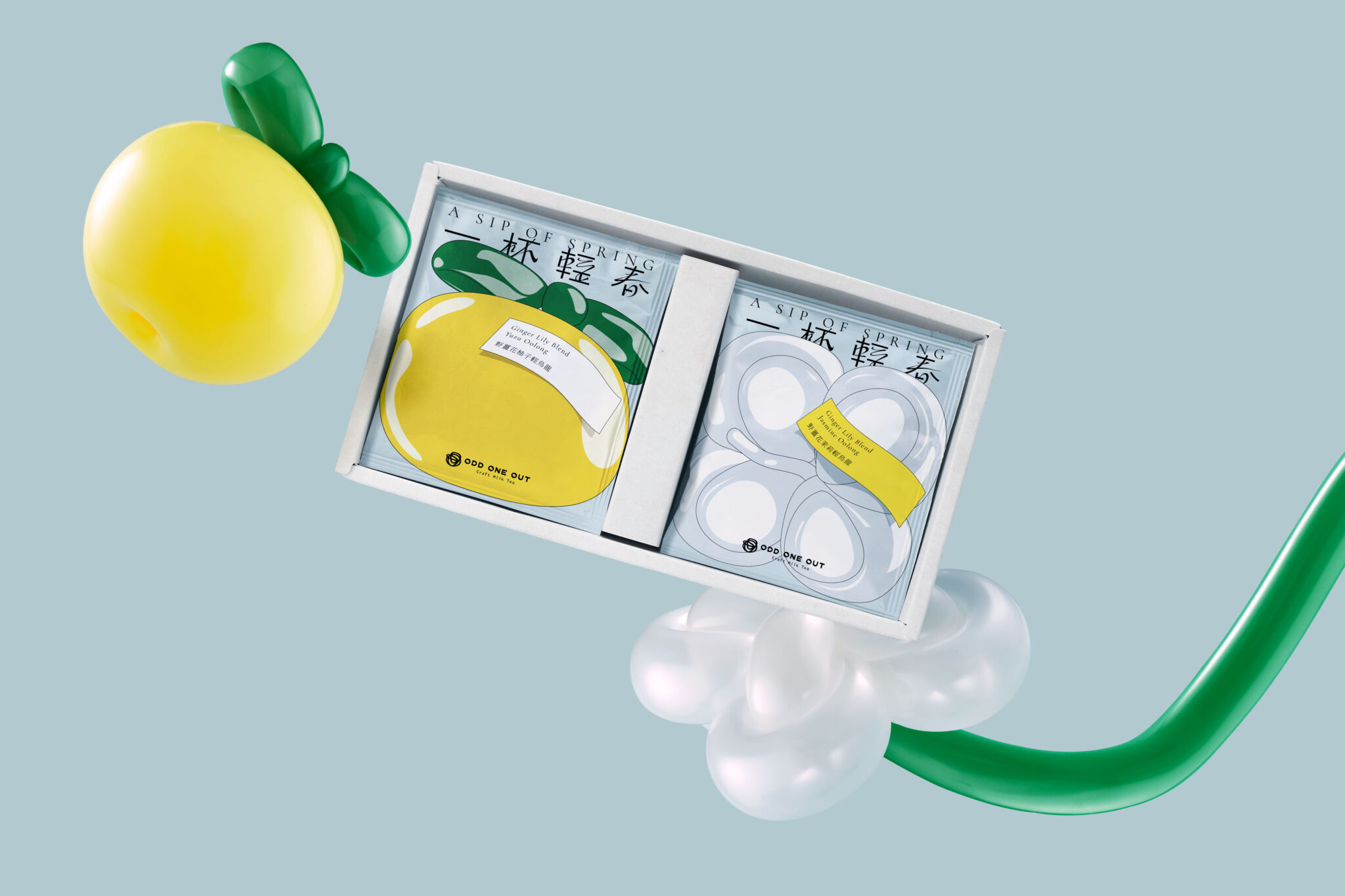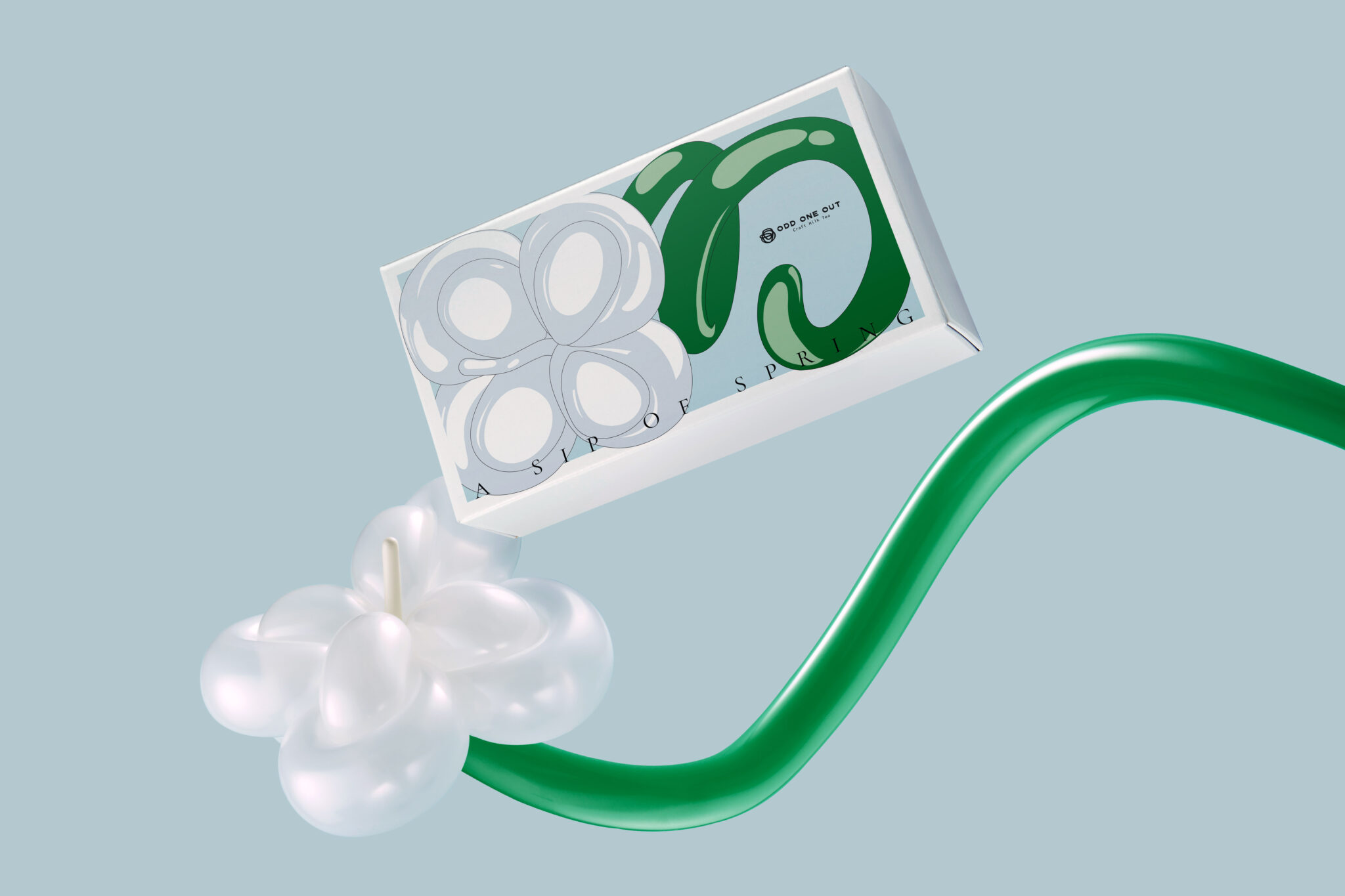“What if we represented ikebana with balloon shapes?” Centered around the concepts of “youth” and “spring,” we embarked on visualizing the “lightness of early spring” and the “Oriental beauty of tea.” Through this process, we aimed to strike a playful yet appropriate balance, offering viewers an intuitive and whimsical experience as they savor a sip of spring.