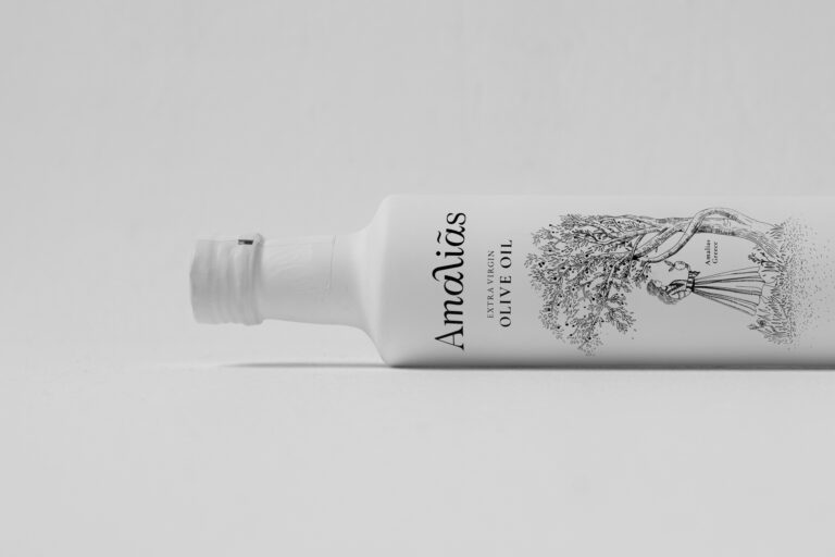 The bottle’s illustration captures the essence of botanical sensations, with a deeply traditional portrayal of Queen Amalia herself, delicately touching the olive seed with care. This gesture imbues our illustration with a sense of warmth and nurturing.