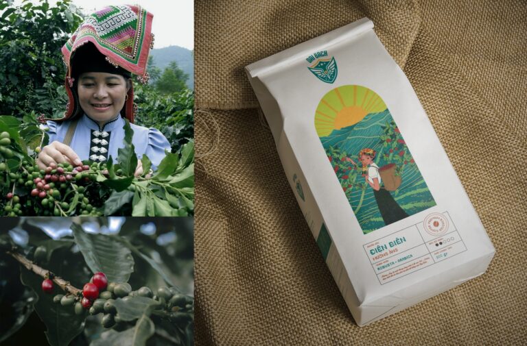 Dai Bach is known as a pioneer company in bringing the Muong Ang coffee brand to domestic and foreign customers. Dai Bach Coffee’s packaging is designed based on the identity of the Thai ethnic people as well as clearly showing the characteristics of this Northwest region.