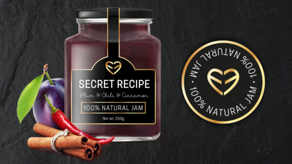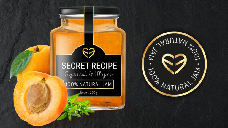 The two letters E mirroring each other represent a heart. The secret lies in the recipe that is prepared with love. It is a passion for making jams in the traditional way, from the heart. Wonderful, isn’t it?! That idea was turned into reality and thus the logo was made. That was followed by the selection of jars and lid colors, and the design of the packaging for a line of three types of jam. Because the jars were small and square-shaped, we didn’t have much space for label design.