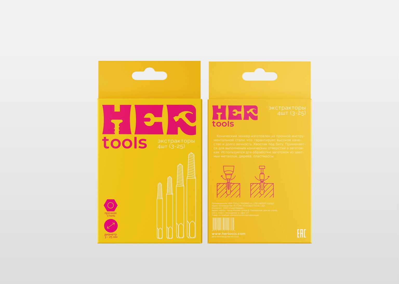 «Hertools» packaging is designed for bright and bold solutions and creates the atmosphere for new beginnings that all creators need. Join «Hertools» and discover a new level of convenience and efficiency in construction.