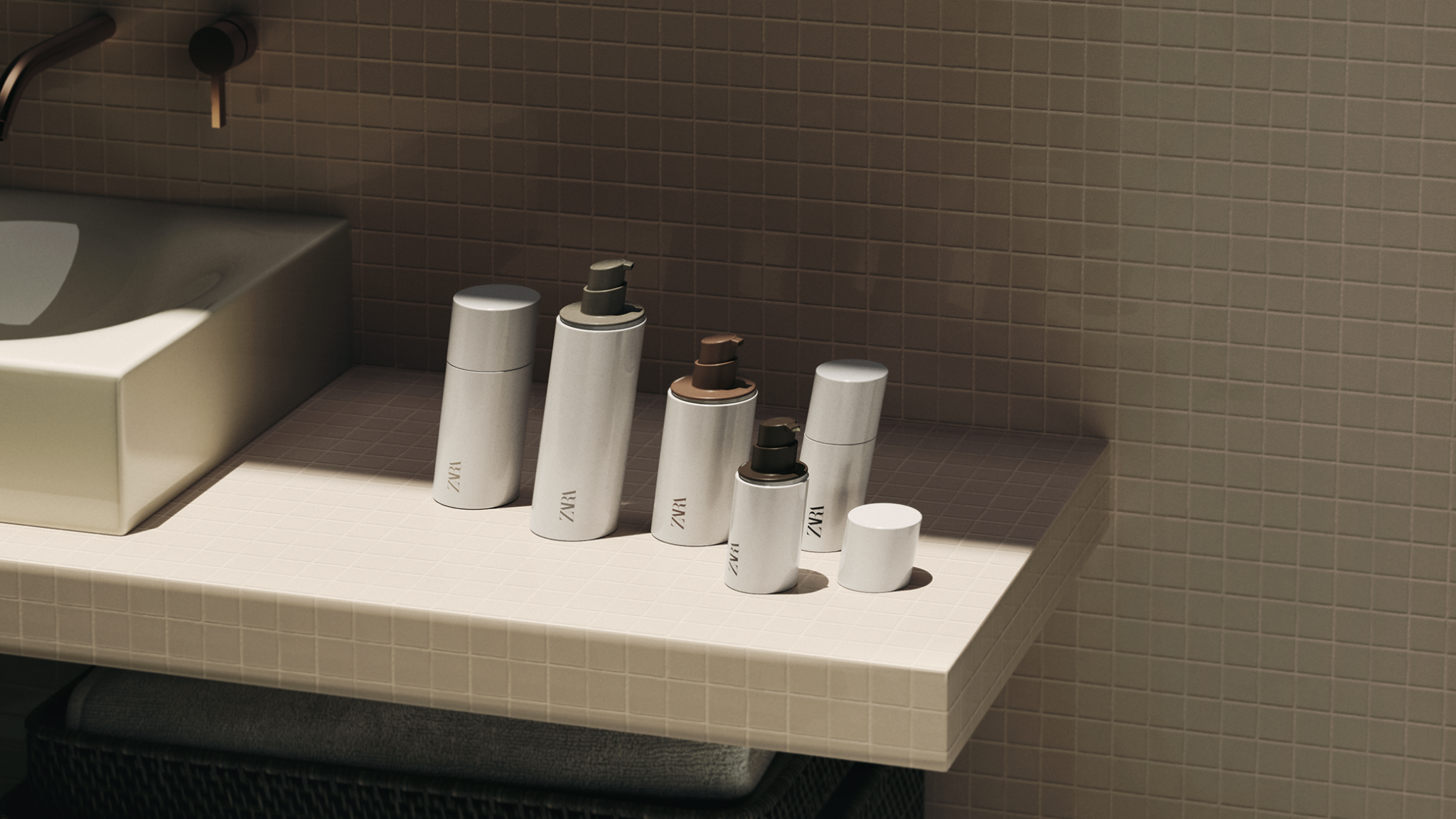 The design of the packaging is inspired by the brand’s visual heritage, taking as a reference its distinguished makeup line conceived by Baron & Baron studio. This influence materializes in an elegant collection of slanted containers, reflecting minimalism and the distinctive slant that evokes the letter “Z” from the ZARA logo.