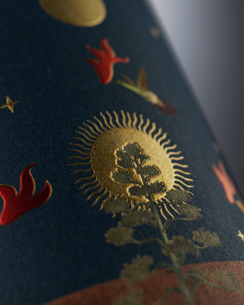 We created the label for Zumbador, a 100% blue agave Mexican tequila. The inspiration derives from the poetic charge of the Hummingbird and its connection with souls and the eternal fire. The agave, also known by ancient civilizations as the Flower of Fire, is the one that grows and matures through moons and suns over the years.