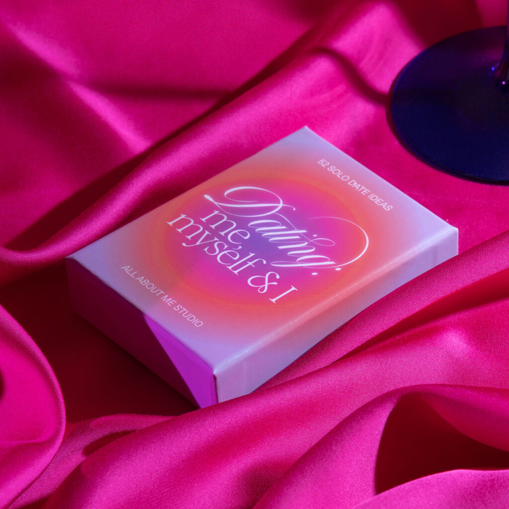 Aamé Solo Date Ideas Cards — 52 solo date ideas cards to embark on your self-love journey. It is designed to treat yourself by choosing solo date idea for the each day. Commit to taking yourself on one solo date a week for one year, and find yourself on the fastest track to self-love. Inspired by the concept of a solo date ideas jar, this card deck turns dating yourself into a fun, spontaneous, and intentional adventure.