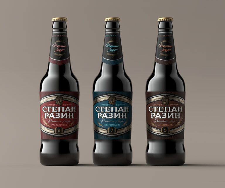 The label design for filtered beer was developed in the spirit of rethinking the classic canons of beer brand design. The brand name is as readable as possible and dominates the design. The balanced central composition of the beer label aligns all communication messages on one axis. Muted shades of red, blue and brown clearly differentiate the subspecies in the line of flavors. Intrigue is created by contrasting combinations between splashes of gold and silver elements with dark areas in the design. The expressive shape of a rounded rhombus, repeated in the cutting of the necklace, adds light dynamics and emphasizes the relevance of the created brand image.