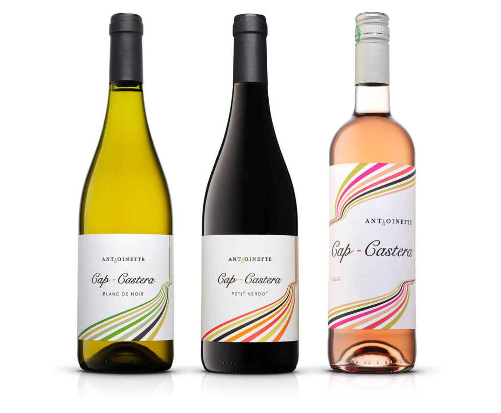 The creation of a range of varietals was born of the success of the estate’s white wine, ANTHOINETTE, which is an opportunity to meet consumer expectations and reconnect with a younger audience looking for something well-made and elegant. The CAP-CASTERA brand appears as an emanation of the ANTHOINETTE white wine, with a nod to Château Castera.