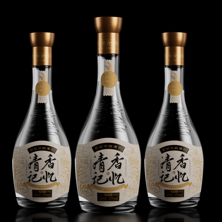 The shape of the bottle is slightly adjusted on the basis of the classic bottle shape to make it more elegant. The color matching comes from traditional Chinese colors. The fresh main color and orange form a contrast to highlight the main information. The stamp design at the bottom is the finishing touch, expressing the image and atmosphere of “time and memory”.