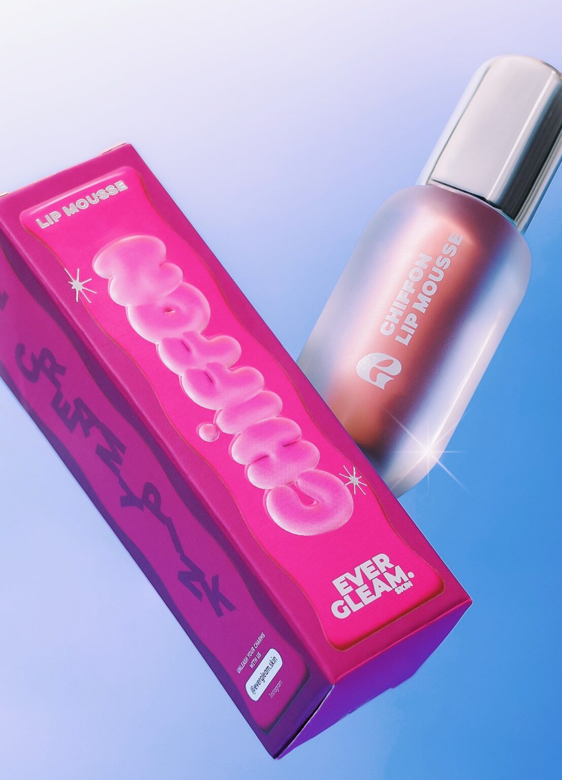 We designed packaging for Evergleam – chiffon lip mousse that embodies softness and fun.