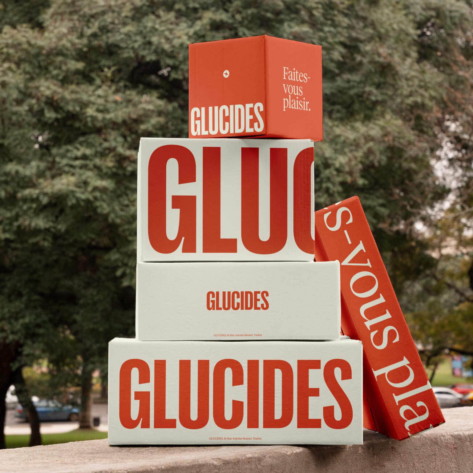 Every aspect of our packaging is a toast to the joyous rebellion against the mundanity of guilt. Bold, confident typography demands attention, embodying the project’s central maxim, “faites-vous plaisir,” — pleasure without excuses. With a palette that echoes the warmth of a sun-drenched coast and the robustness of freshly baked bread, ‘GLUCIDES’ invites you to cast aside caution and celebrate the moment with gusto.