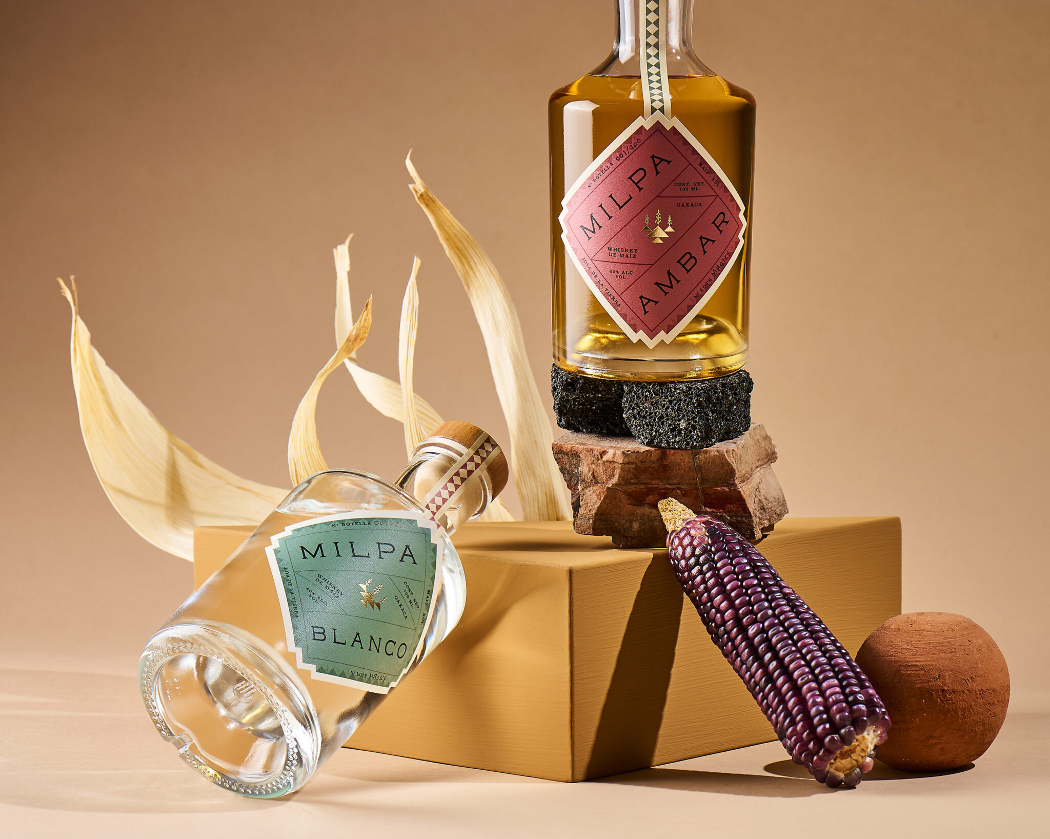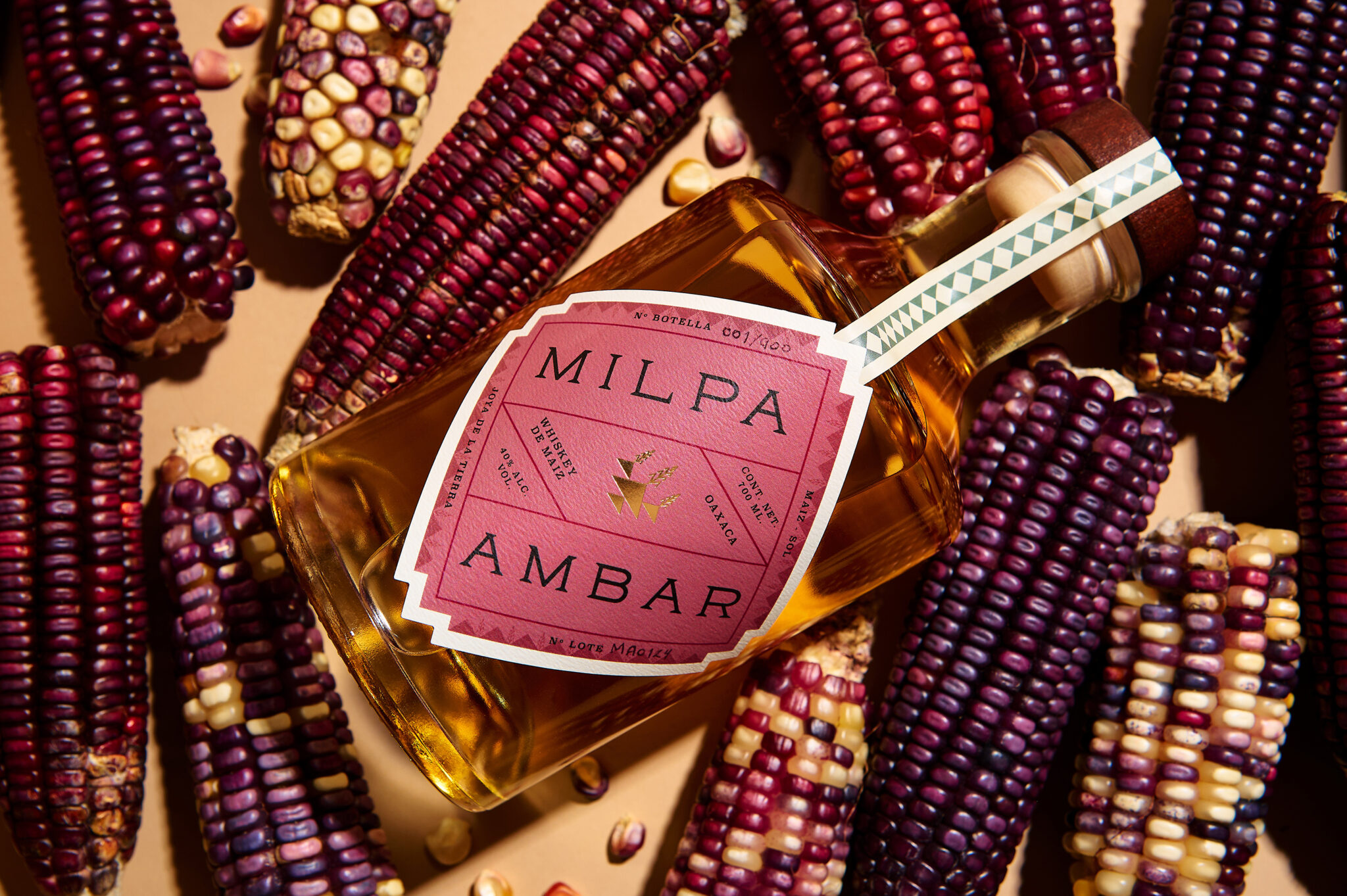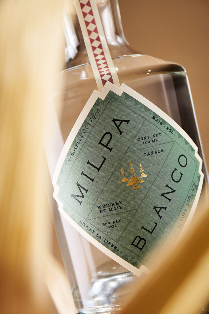Drawing from the rich cultural tapestry of Oaxaca, Milpa’s identity is influenced by the vibrant colors and bas-reliefs of the pre-Hispanic city of Mitla, as well as the natural landscape of the region. The red hue of the Ambar label reflects the color of cooked blue corn, while the green background of the Blanco label symbolizes the germination process integral to Milpa’s unique flavor profile.