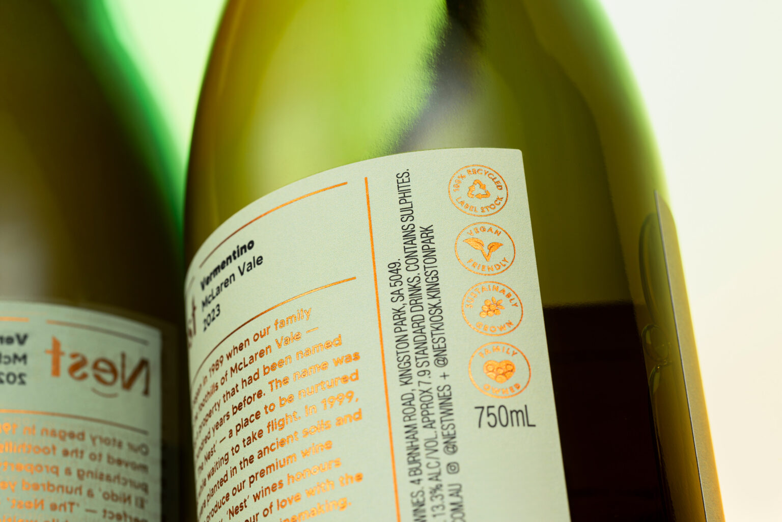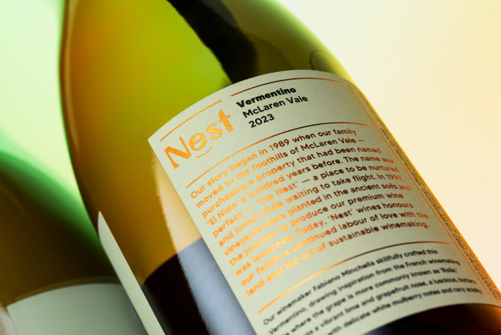 Clean and elegant by design, Nest’s branding features minimalist tones and textures reflective of the land, and the wines they’ve crafted. The logo subtly incorporates an egg and nest motif, symbolising the nurturing spirit of their childhood home and café.