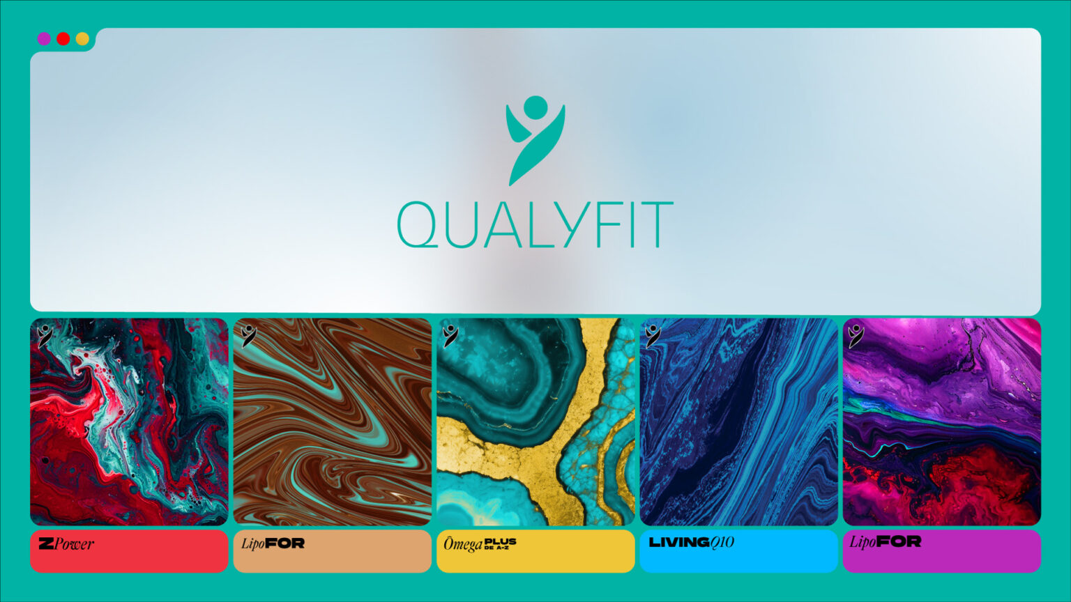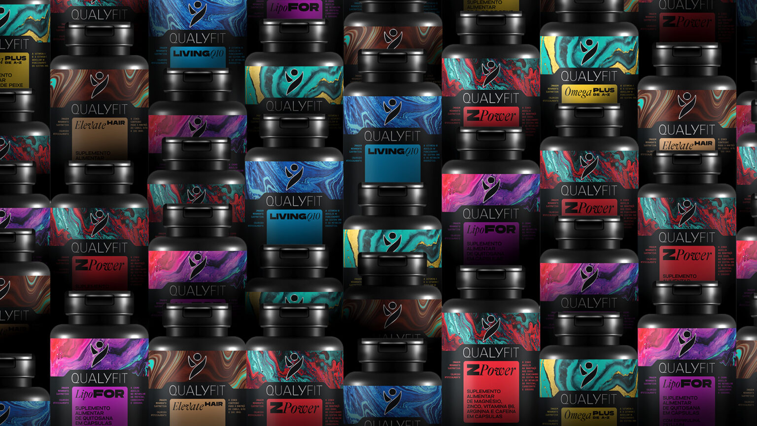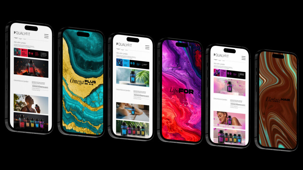 The Qualyfit redesign project aimed to elevate the brand’s visual identity, reflecting themes of energy, health, vitality, and well-being. This comprehensive redesign included updating the logo, creating new product labels, developing a brand manual, and enhancing the social media presence with fresh visuals and templates. The logo was refined to maintain its original sense of freedom but now features thinner, more elegant letters. The product line—comprising Lipofor, Ômega Plus, Zpower, Elevate Hair, and Living Q-10—received new labels with vibrant colors symbolizing freshness and dynamism.