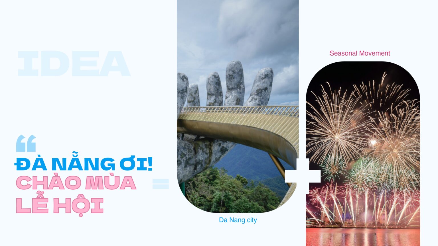 Firstly, to capture the festival spirit, the key visual is the scene that depicts bears and dragons enjoying a spring outing at the Golden Bridge, one of the landmarks of Da Nang City.