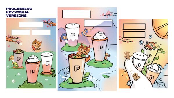 Three key elements are presenting the design: festival, seasonal movement, and P Coffee.
