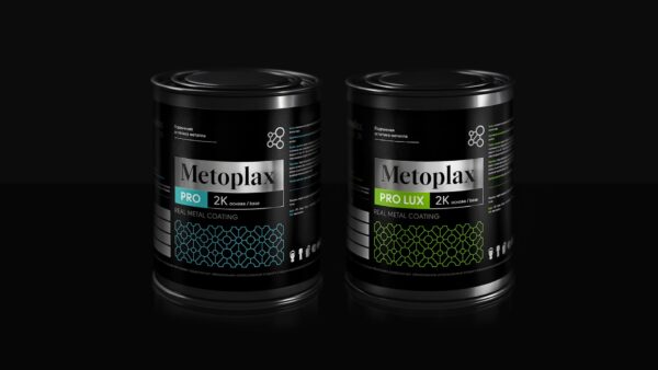 Metoplax is a brand of decorative liquid metal coatings. Attention! Not based on liquid metal, but made from it. During decoration, the product is covered with a thin layer of metal and begins to resemble iron, gold, zinc, etc. There is a whole line of textures. When developing the brand identity and packaging, it was important to maintain Metoplax’s open approach to business and highlight the decorative aspect of the brand.