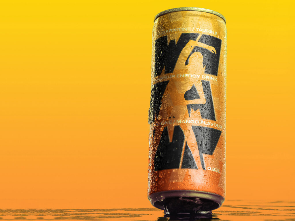 Bright visual image of human silhouette makes a can package stand out from shelf space. Comprehensive details, such as pattern and typography emphasize sport-related category of the product.