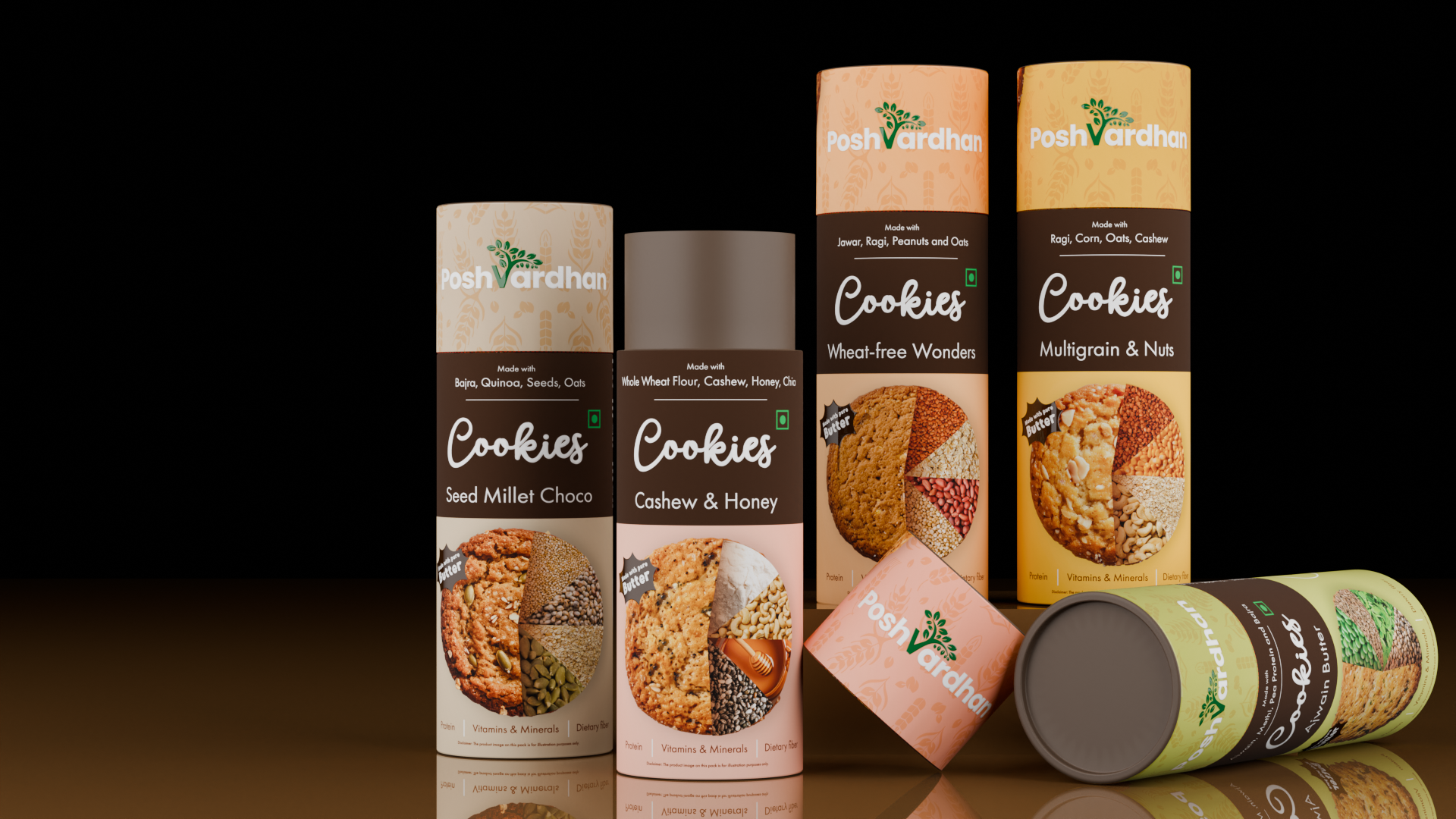 Cookies are been sold in plastic wrappers, here is a paper tube cannister which serves as a sustainable option for the reduction in use of plastic. With all the clutter in the market Poshvardhan cookies will stand out and also provide a sustainable and nutritional option compared to your regular cookies.