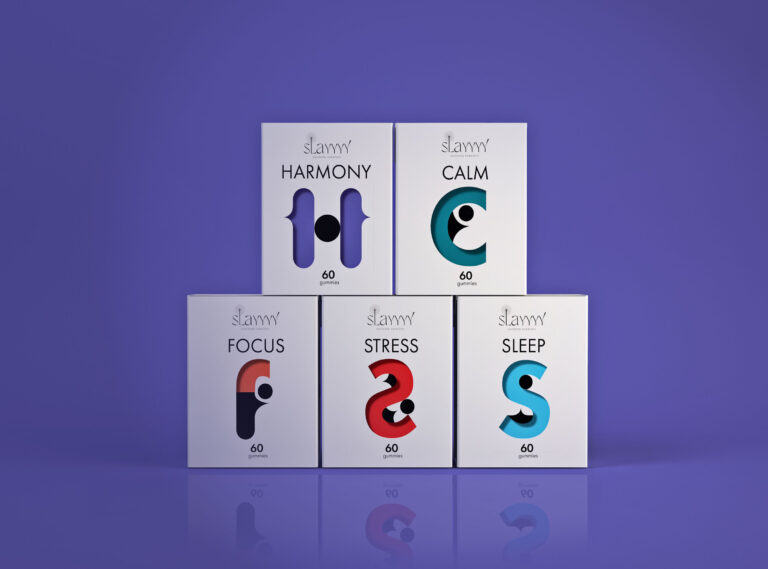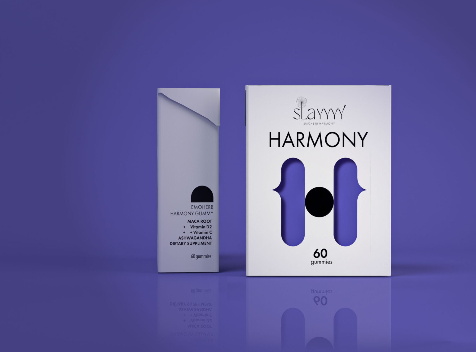 The brand identity and packaging design for Slayyyy was inspired by harmony and finding the perfect balance for each individual. Message of the brand: “Illuminating every life with innovative herbs & heartfelt support.”